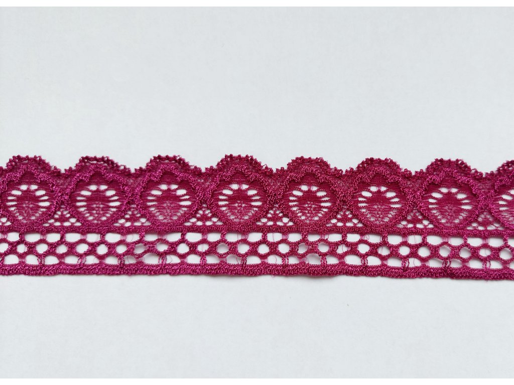 Krásná krajka v bordó barvě s jemným dekorem.