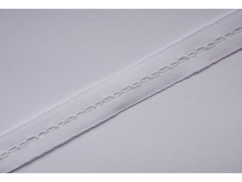 Bílá půlená pruženka o šíři 14 mm je ideální volbou pro šití spodního prádla i začištění běžných oděvů. Díky středové linii ji lze snadno přehnout napůl, což umožňuje vytvořit čistý, pružný a profesionálně vypadající lem bez složitého zakládání materiálu. Je vhodná pro zakončení kalhotek, braziliek, tang, podprsenek i braletek, zároveň se skvěle hodí pro lemování výstřihů, průramků nebo spodních lemů triček, body a šatů.