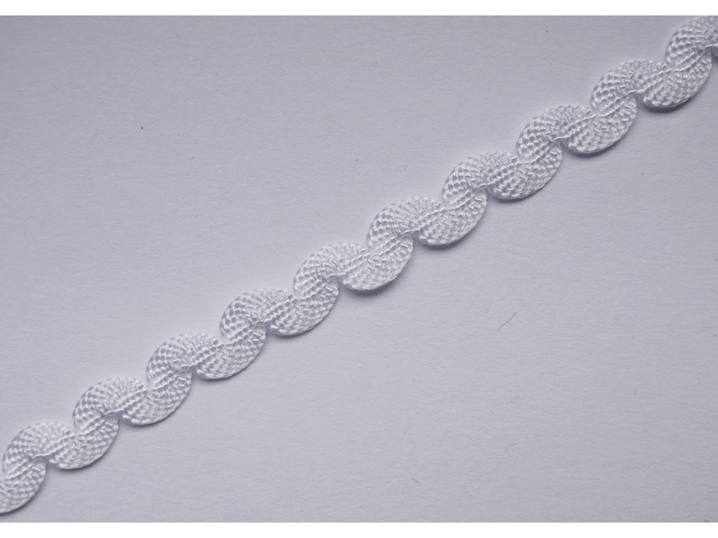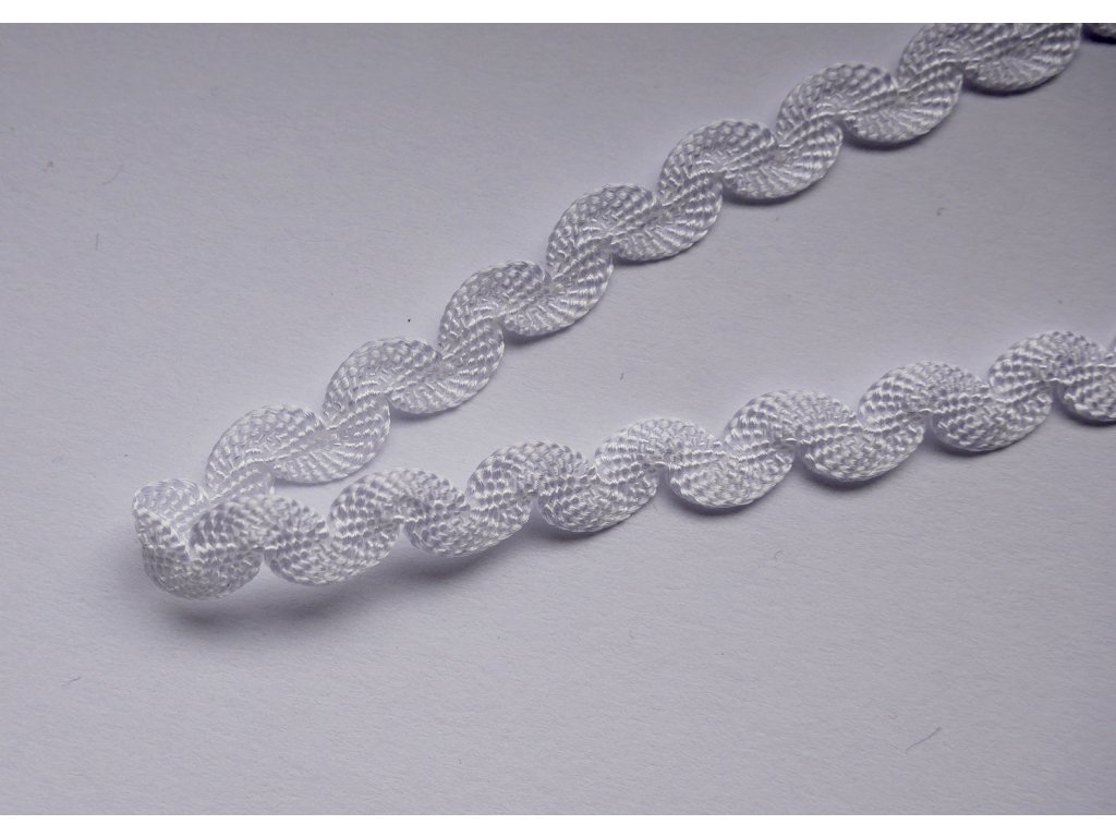 Ozdobná pruženka v bílé barvě s vlnkami, šíře: 7 mm. Jemná v tahu. Země původu: Francie.