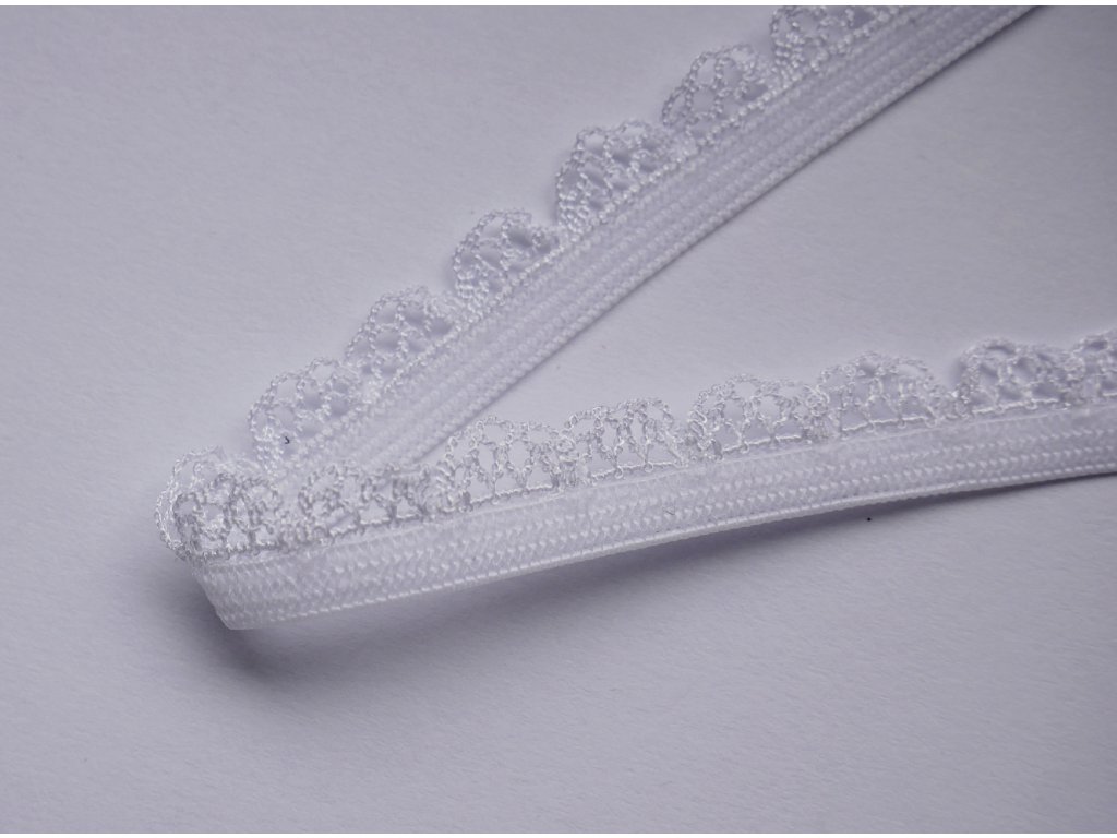 Bílá ozdobná pruženka je univerzální a elegantní volbou pro šití spodního prádla, podprsenek, kalhotek, braletek i body. Díky své pružnosti a jemnému dekorativnímu zakončení zajišťuje maximální pohodlí při nošení a zároveň dodává prádlu čistý, profesionální vzhled.