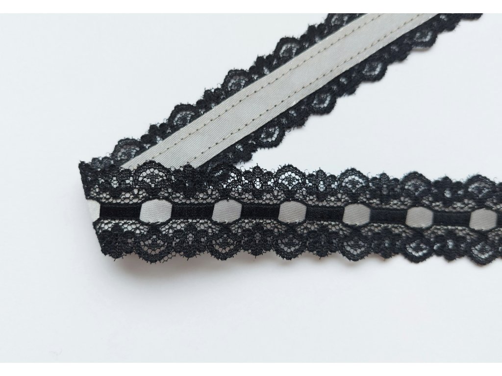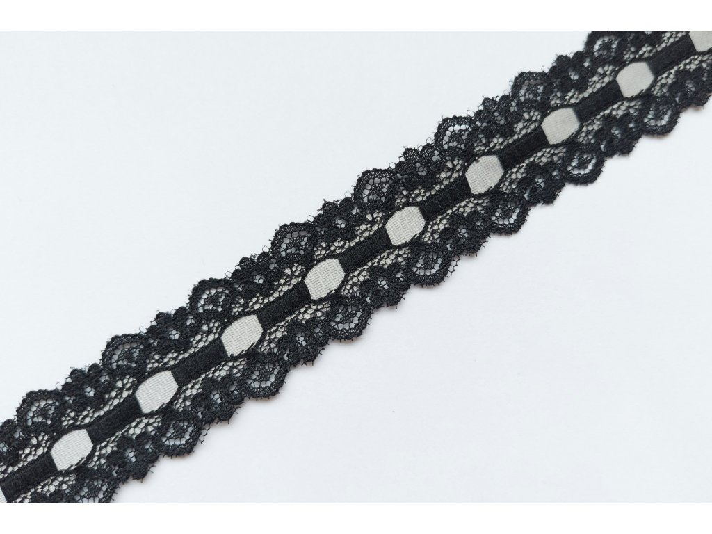 Nepružná černá krajka se stříbrnou stuhou