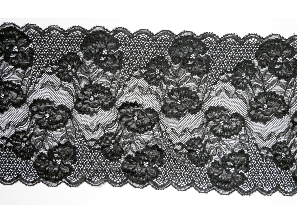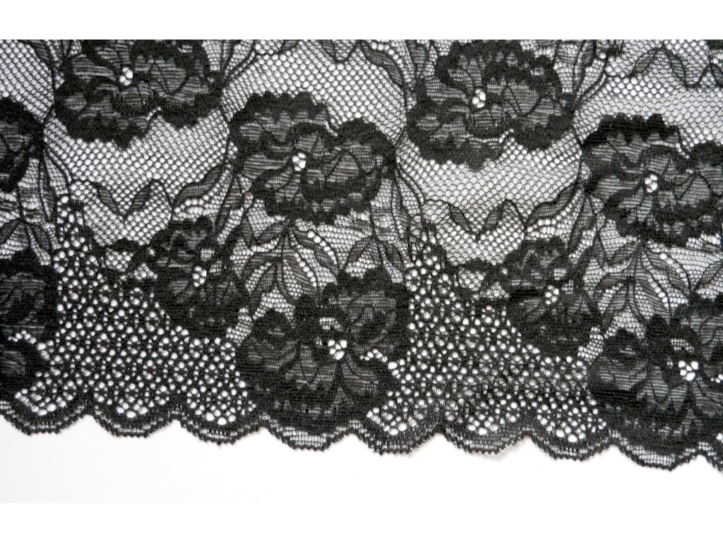 Jemná krajka v černém odstínu s květinovým motivem.