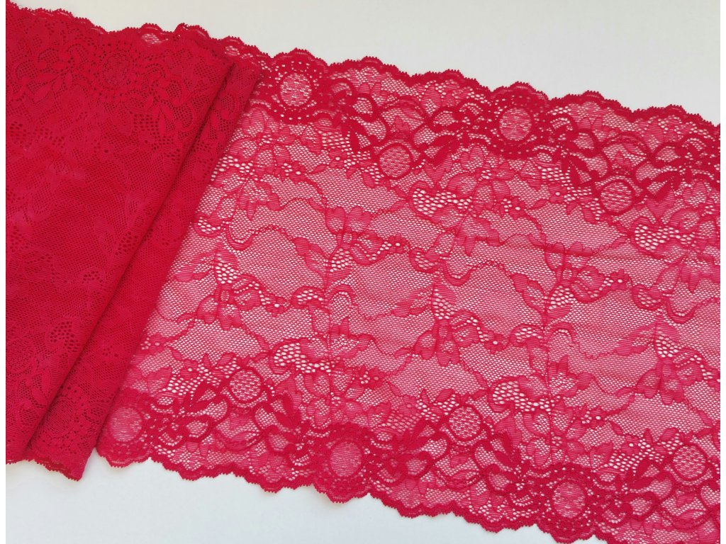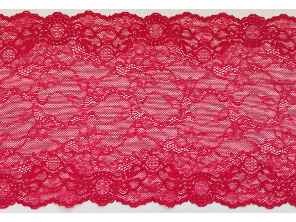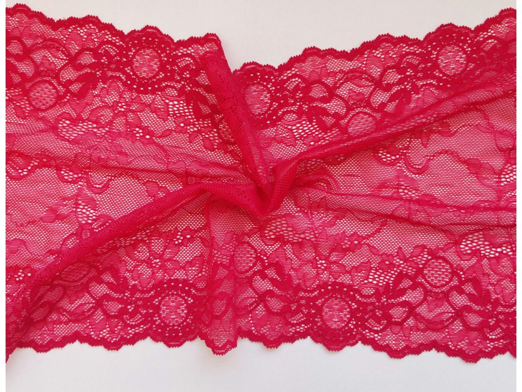 Tato malinová krajka na spodní prádlo je skvělou volbou pro tvorbu výrazného, ženského a elegantního prádla. Sytý malinový odstín působí luxusně a moderně a dodává hotovému výrobku originalitu i vizuální přitažlivost.