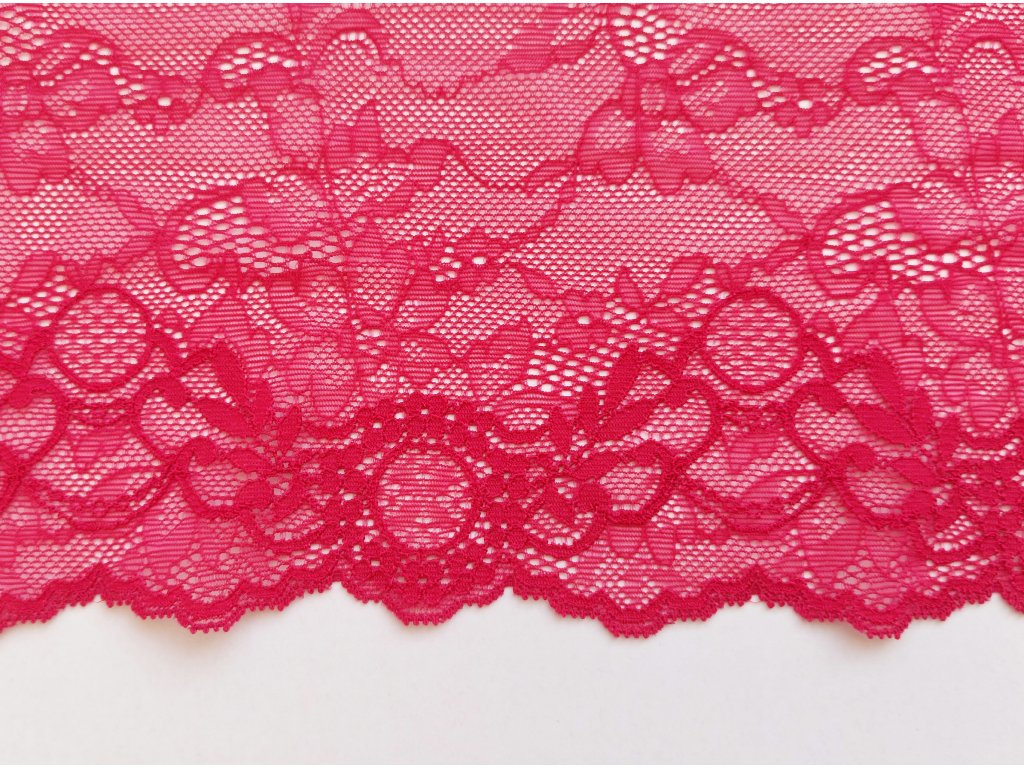 Jemná splývavá krajka v malinovém barevném odstínu s motivem jemných květinek.
