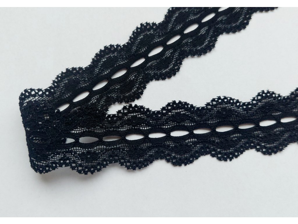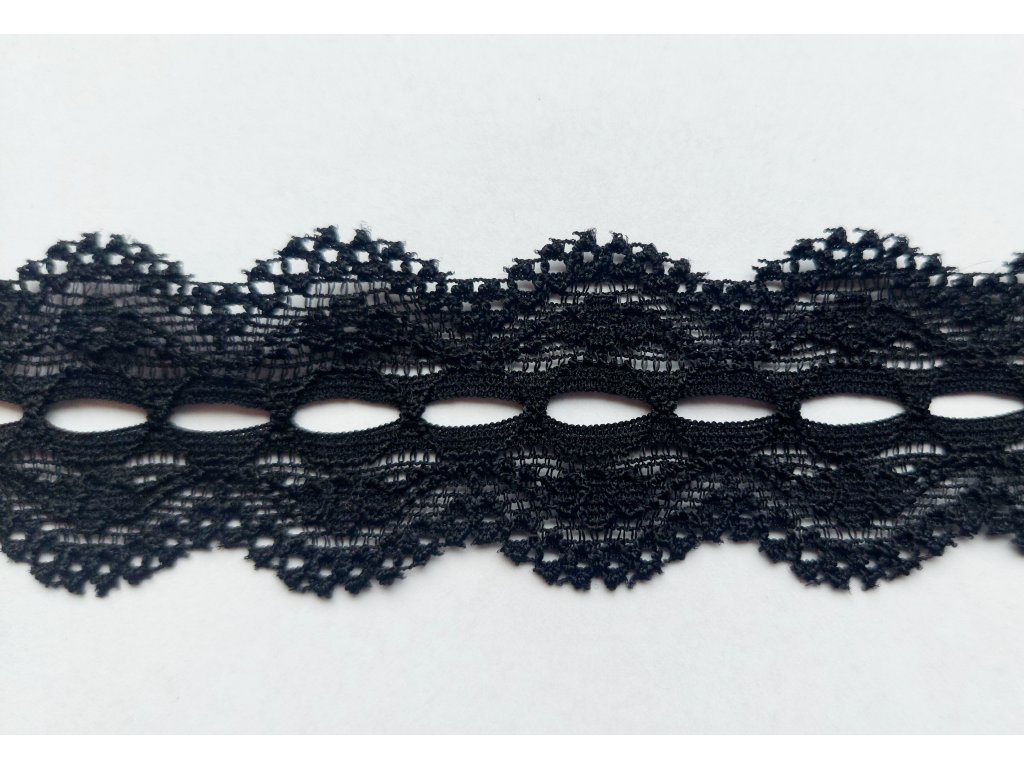 Úzká černá krajka je univerzální a nadčasový galanterní materiál, který najde své využití nejen při šití spodního prádla, ale také u společenských oděvů a elegantního denního oblečení. Díky své jemné struktuře a sofistikovanému vzhledu dodá každý šicí projekt nádech luxusu a ženskosti.