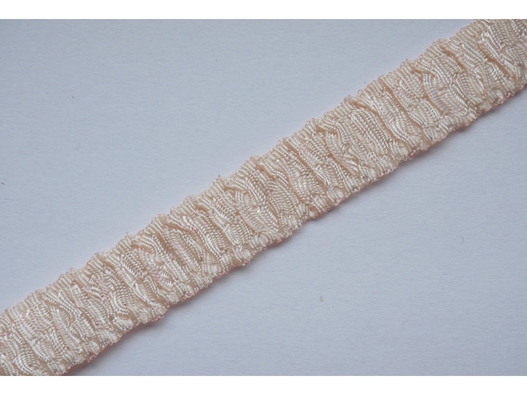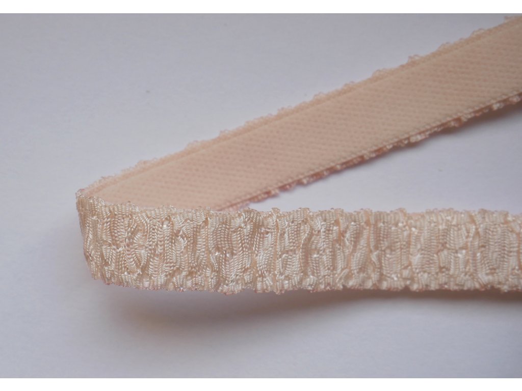 Luxusní ozdobná ramínková pruženka v pudrově růžové barvě o šířce 12 mm s jemně řaseným povrchem je ideální pro šití podprsenek, braletek a designového spodního prádla. Elegantní struktura dodává ramínkům dekorativní vzhled bez nutnosti dalších ozdobných prvků.