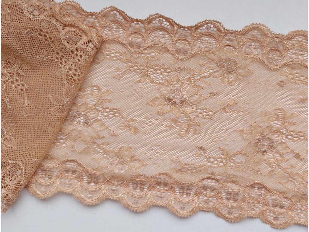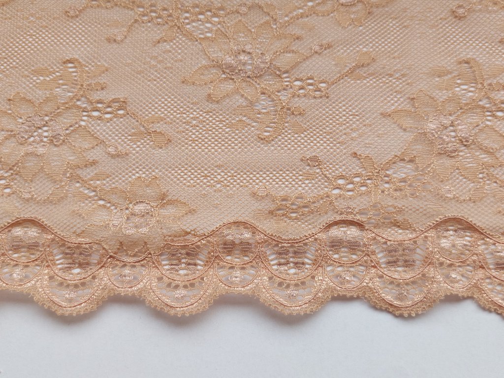 Tato tmavší tělová krajka z Itálie je perfektní volbou pro všechny, kdo hledají elegantní a luxusní materiál pro tvorbu spodního prádla. Přirozený tělový odstín působí sofistikovaně, krásně splývá s pokožkou a poskytuje nadčasový vzhled, zatímco italský původ zaručuje vysokou kvalitu a precizní zpracování.
