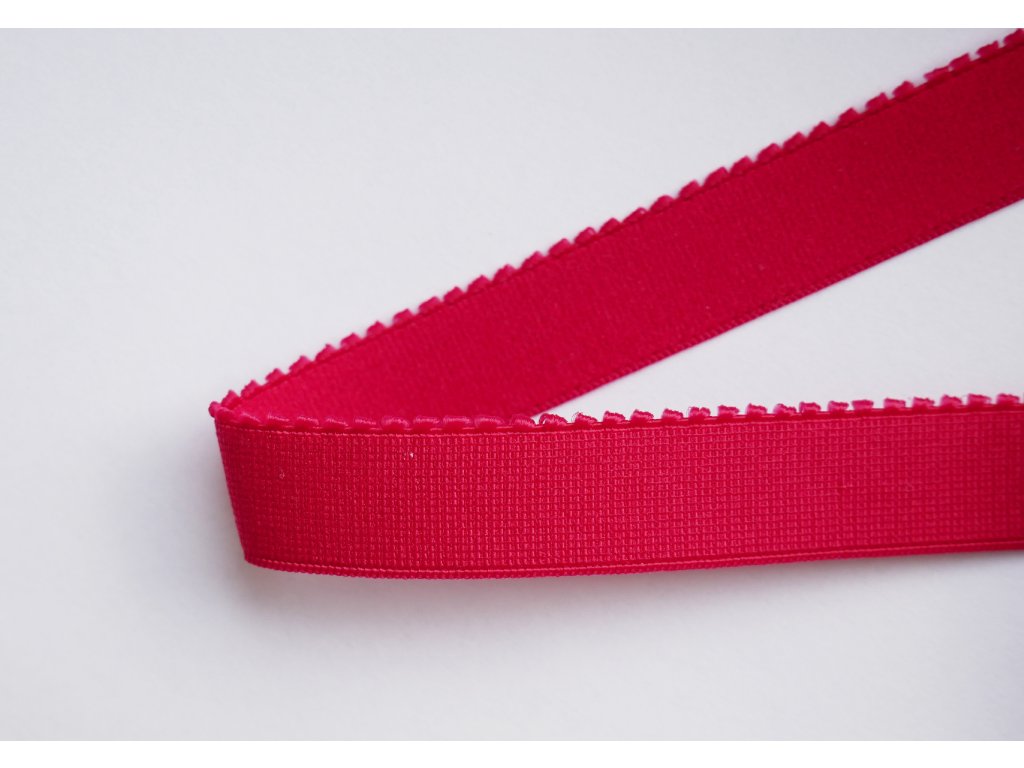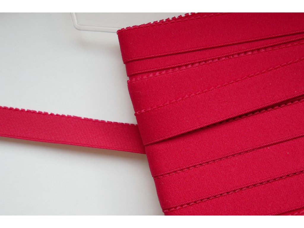 Červená pikotová pruženka je kvalitní galanterní materiál ideální pro šití podprsenek a braletek. Výrazná červená barva dodá spodnímu prádlu smyslný a elegantní vzhled, díky čemuž je perfektní volbou pro výrazné i luxusní modely.