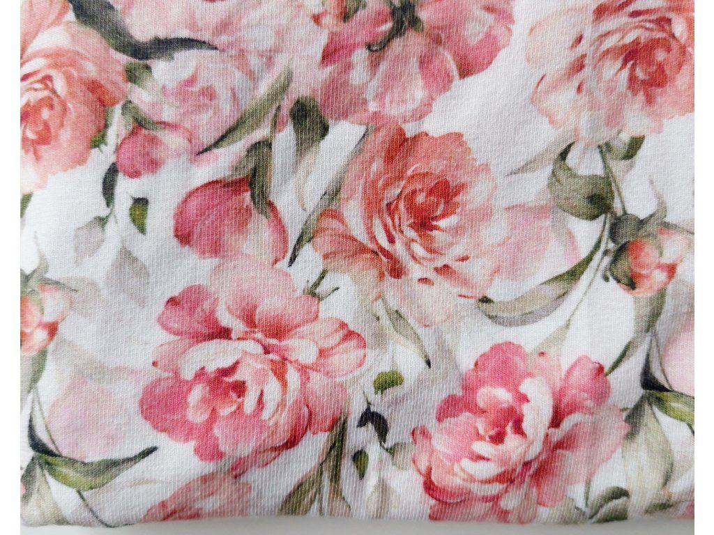 - bavlněná látka s motivem růží (96% bavlna, 4 % elastan, gramáž: 200 g/m²)