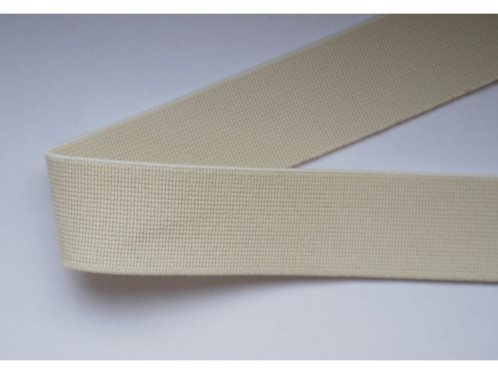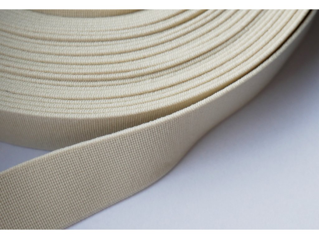 Širší tkaná pruženka v béžovém barevném provedení, měkká a příjemná na dotek, pevnější v tahu.
