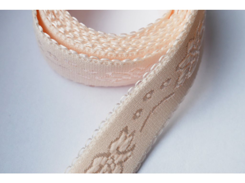 Krásná širší pudrová pruženka s jemným květinovým vzorem je skvělou volbou pro šití moderního i romantického spodního prádla. Díky svému širšímu provedení je pohodlná na nošení a zároveň pevná v tahu, takže spolehlivě drží tvar i při každodenním používání.