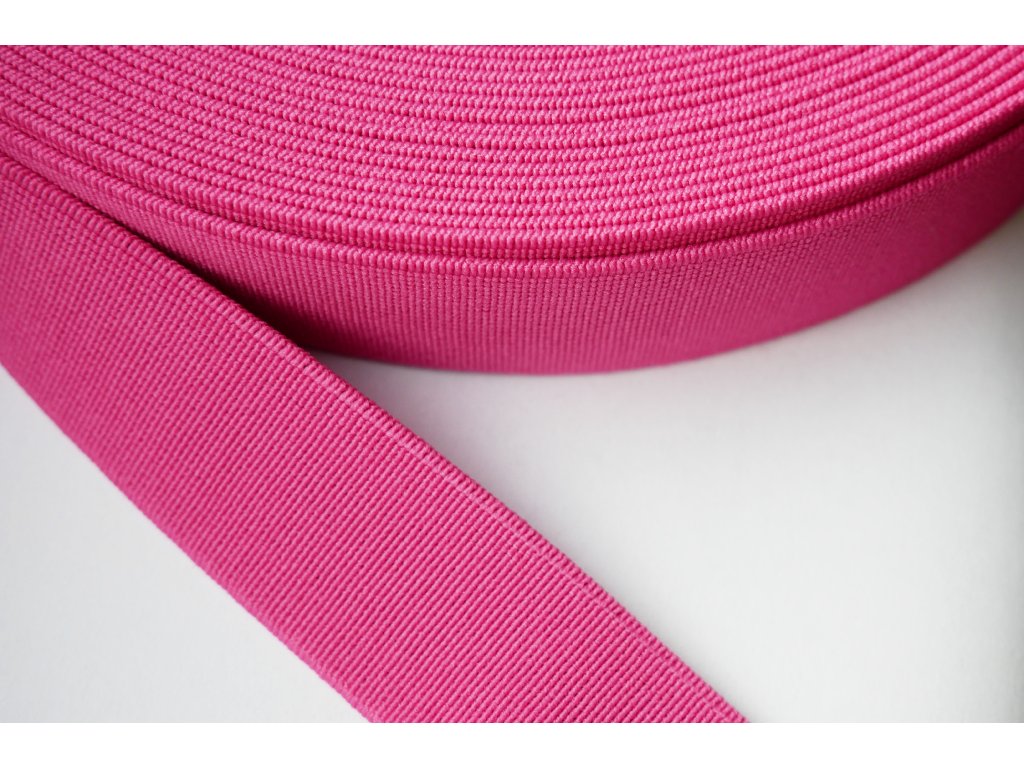 Širší tkaná pruženka v tmavě růžovém barevném provedení, měkká a příjemná na dotek, pevnější v tahu.