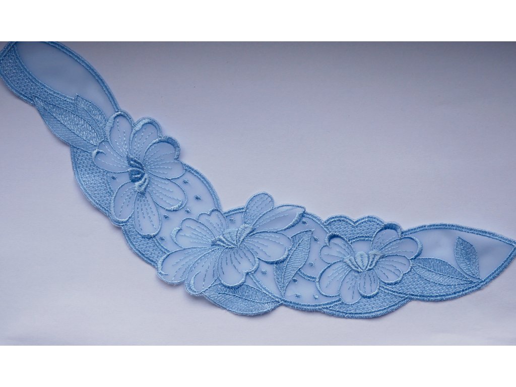 Světle modrá vsadka do průkrčníku.