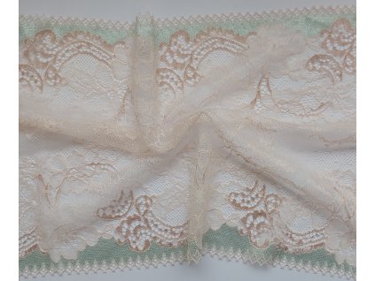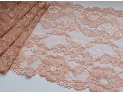 Krásná krajka v meruňkové/tělové barvě s černými okraji.