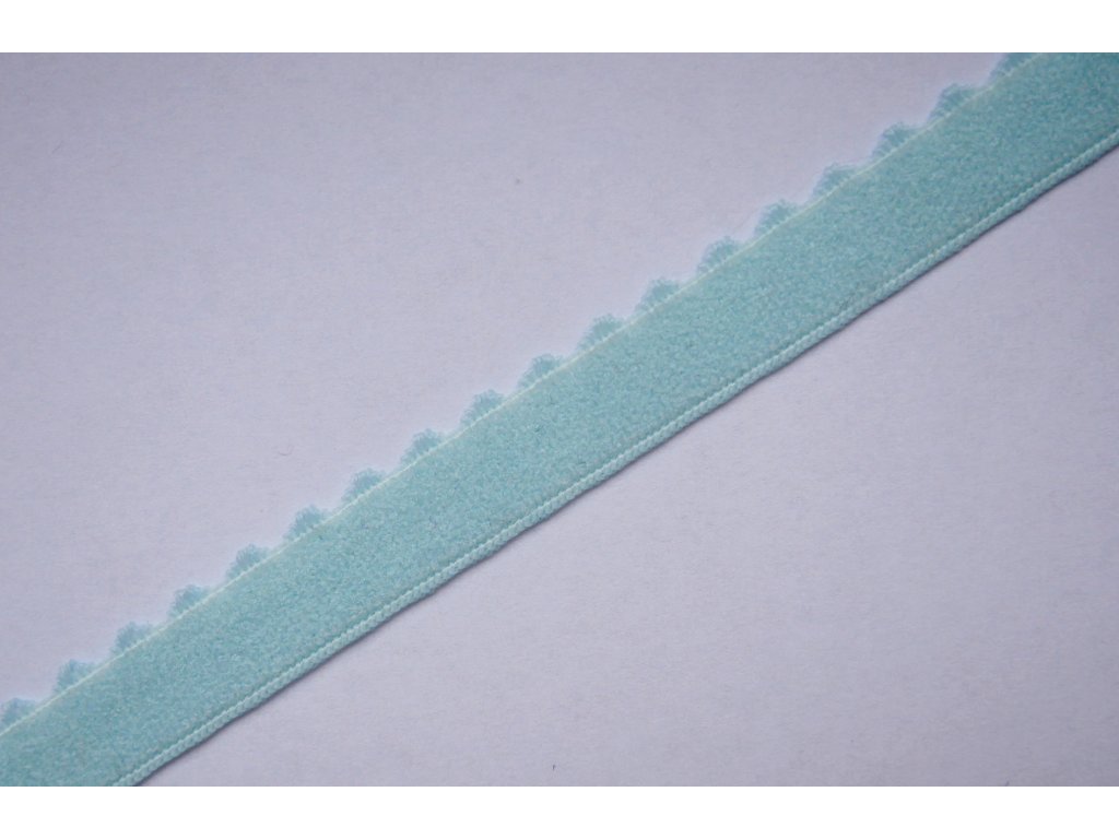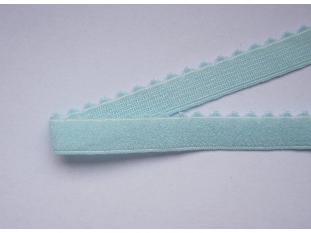 Pikotová pruženka s ozdobným zakončením ve světle modré barvě, středně pevná v tahu.