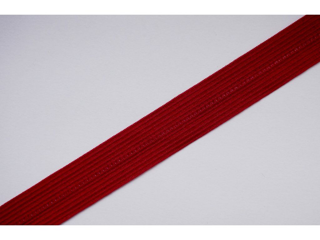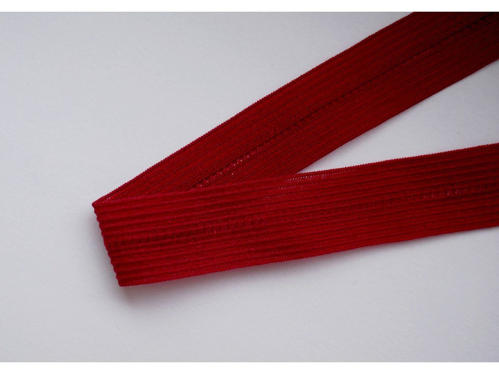 Půlená pruženka v tmavě červené barvě o šíři 12 mm je jemná, pružná a velmi příjemná na nošení. Díky matnému povrchu působí elegantně a přirozeně, což z ní dělá skvělou volbu především na šití spodního prádla – kalhotek, podprsenek, braletek i dětského prádla.