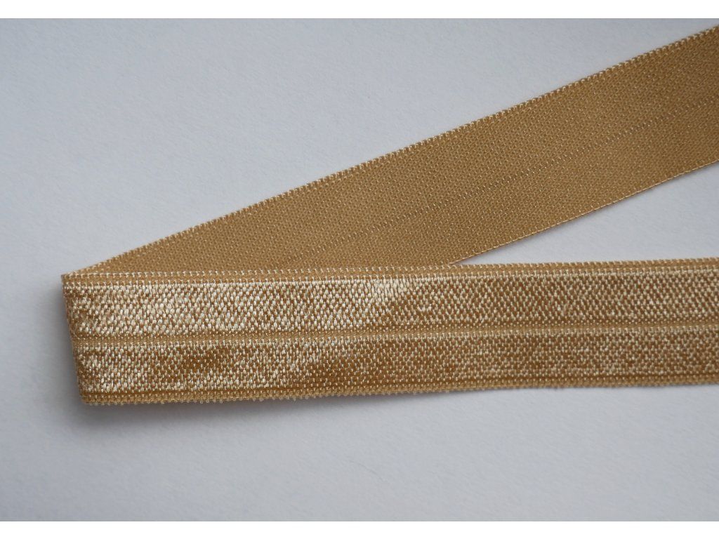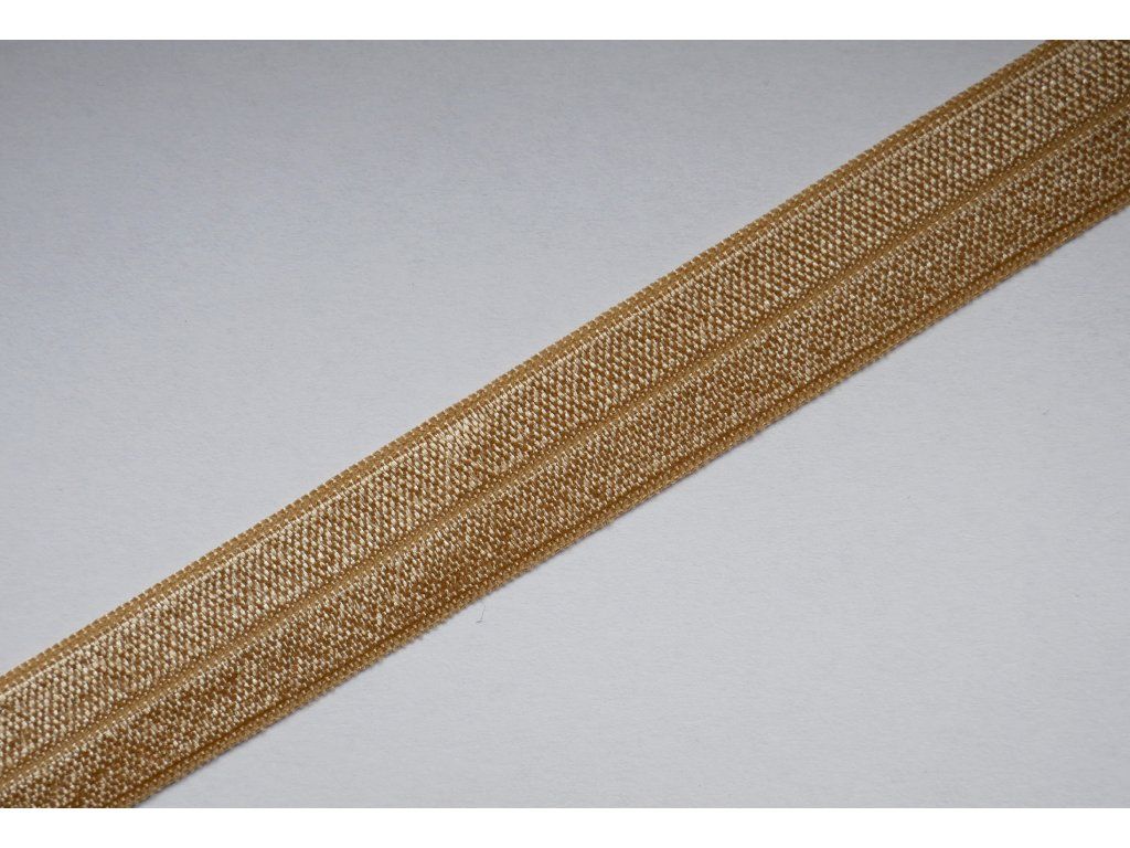 Tmavě tělová půlená pruženka o šíři 15 mm je perfektní volbou pro šití spodního prádla i úpravu lemů běžných oděvů. Díky přehýbacímu (půlenému) provedení umožňuje snadné a precizní zapravení okrajů látky bez složitého šití. Lesklý povrch dodává výrobkům elegantní a profesionální vzhled.