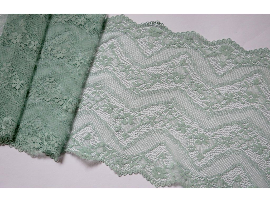 Zelenomodrá krajka na spodní prádlo zaujme na první pohled svým krásným něžným pastelovým odstínem, který působí elegantně, svěže a velmi ženským dojmem. Díky svému původu z Francie přináší osvědčenou kvalitu a smysl pro detail, který ocení každá švadlena i návrhářka.